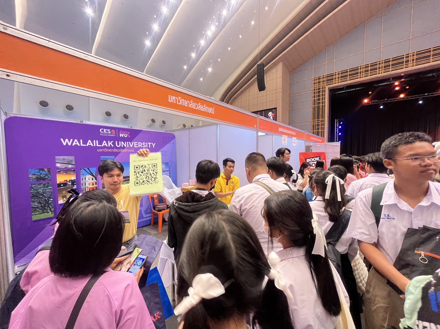 สำหรับบูธกิจกรรม มหาวิทยาลัยวลัยลักษณ์ มีการประสัมพันธ์หลักสูตรที่เปิดรับสมัคร ในปีการศึกษา 2566 กว่า 16 สำนักวิชา 3 วิทยาลัยนานาชาติ แนะนำช่องทางการสมัครออนไลน์และช่องทางการประชาสัมพันธ์มหาวิทยาลัยผ่านสื่อต่างๆให้นักเรียนได้เข้าไปติดตามข่าวสาร รวมทั้งแจกเอกสารประชาสัมพันธ์สำนักวิชา และเปิดโอกาศให้นักเรียนได้ซักถามรายละเอียดในการรับสมัคร รวมถึงเล่นเกมส์รับรางวัลมากมาย ทำให้นักเรียนที่เข้าร่วมกิจกรรมบูธมหาวิทยาลัยวลัยลักษณ์ ได้รู้จักมหาวิทยาลัยวลัยลักษณ์เพิ่มมากขึ้น อย่างไรก็ตามการเข้าร่วมกิจกรรมในครั้งนี้งานรับนักศึกษาได้มีโอกาศประชาสัมพันธ์ให้นักเรียนชั้นมัธยมศึกษาตอนปลาย นักเรียนอาชีวศึกษา ครูแนะแนว ผู้ปกครอง และผู้ที่สนใจได้ทราบถึงแนวทางการเข้าศึกษาต่อในมหาวิทยาลัยวลัยลักษณ์ ระดับปริญญาตรี และเป็นการเก็บข้อมูลความสนใจใช้ในการประชาสัมพันธ์มหาวิทยาลัยต่อไป