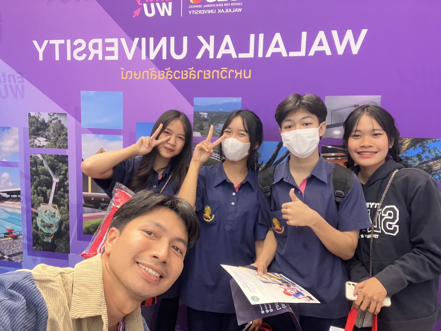 เมื่อวันที่ 7-8 พฤศจิกายน 2566 อาจารย์ ดร.นีรนาท แก้วประเสริฐ ระฆังทอง มอบหมายเจ้าหน้าที่งานรับนักศึกษา ศูนย์บริการการศึกษา มหาวิทยาลัยวลัยลักษณ์ เดินทางเข้าร่วมกิจกรรมนิทรรศการตลาดนัดหลักสูตรอุดมศึกษา ครั้งที่ 26 ณ มหาวิทยาลัยขอนแก่น จังหวัดขอนแก่น สำหรับนิทรรศการตลาดนัดหลักสูตรอุดมศึกษา ในครั้งนี้ มีสถาบันอุดมศึกษาจากทั่วประเทศเข้าร่วมถึง 80 สถาบัน และมีนักเรียนนักเรียนชั้นมัธยมศึกษาตอนปลายจากภาคตะวันออกเฉียงเหนือเข้าร่วมกิจกรรมกว่า 50,000 คน