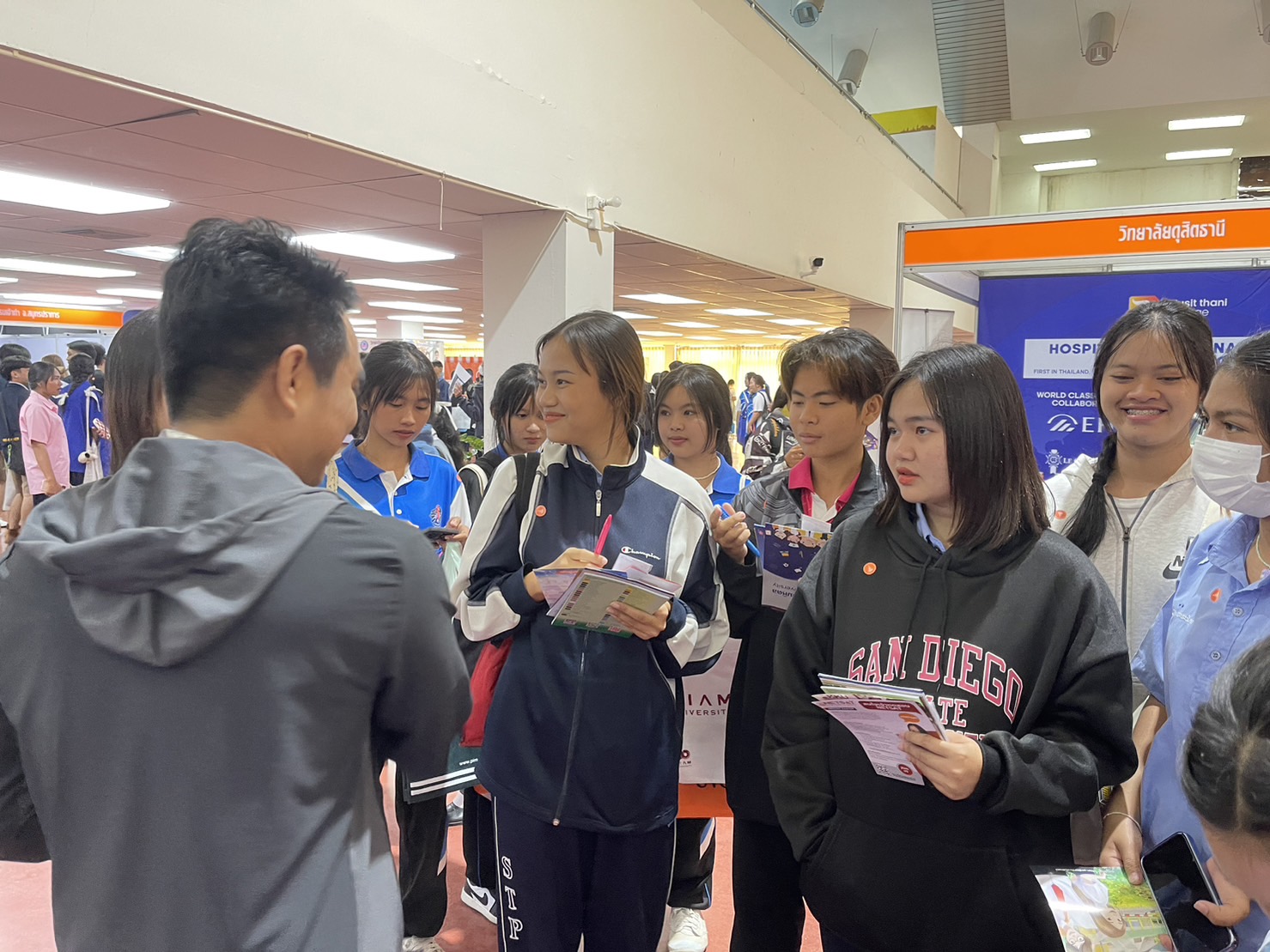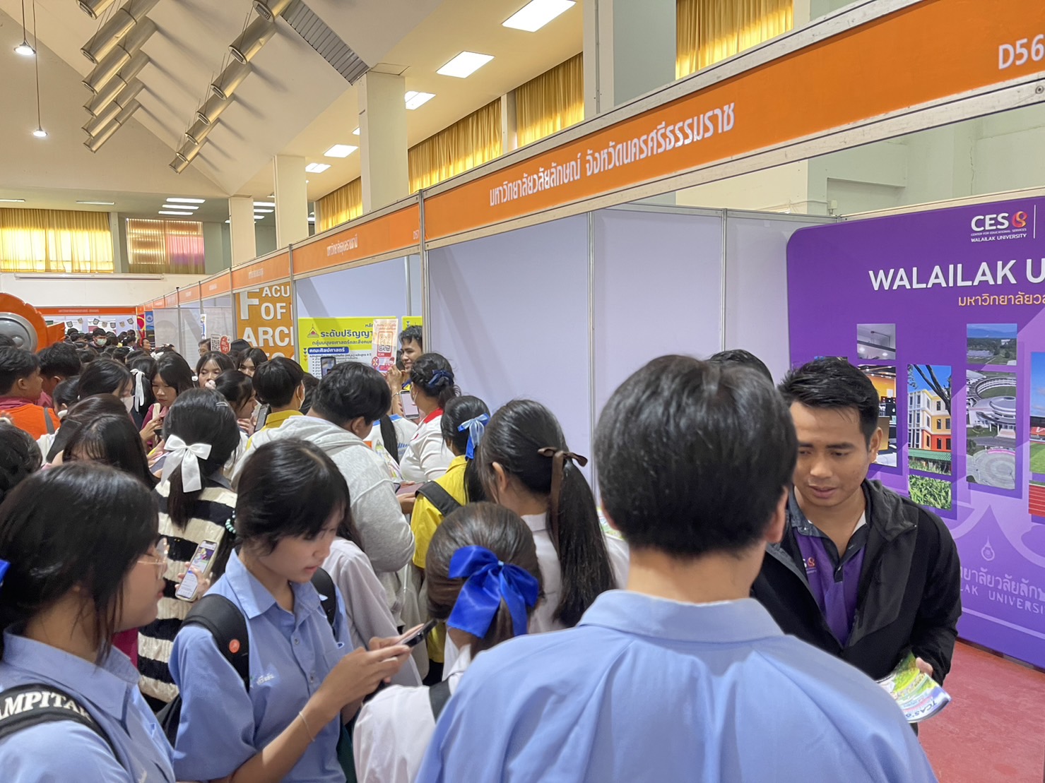 เมื่อวันที่ 23-24 พฤศจิกายน 2566 อาจารย์ ดร.นีรนาท แก้วประเสริฐ ระฆังทอง มอบหมายเจ้าหน้าที่งานรับนักศึกษา ศูนย์บริการการศึกษา มหาวิทยาลัยวลัยลักษณ์ เดินทางเข้าร่วมกิจกรรมนิทรรศการตลาดนัดหลักสูตรอุดมศึกษา ครั้งที่ 26 ณ มหาวิทยาลัยเทคโนโลยีสุรนารี จังหวัดนครราชสีมา สำหรับนิทรรศการตลาดนัดหลักสูตรอุดมศึกษา ในครั้งนี้ มีสถาบันอุดมศึกษาจากทั่วประเทศเข้าร่วมถึง 58 สถาบัน และมีนักเรียนนักเรียนชั้นมัธยมศึกษาตอนปลายจากภาคตะวันออกเฉียงเหนือและภาคอื่นๆ เข้าร่วมกิจกรรมกว่า 30,000 คน