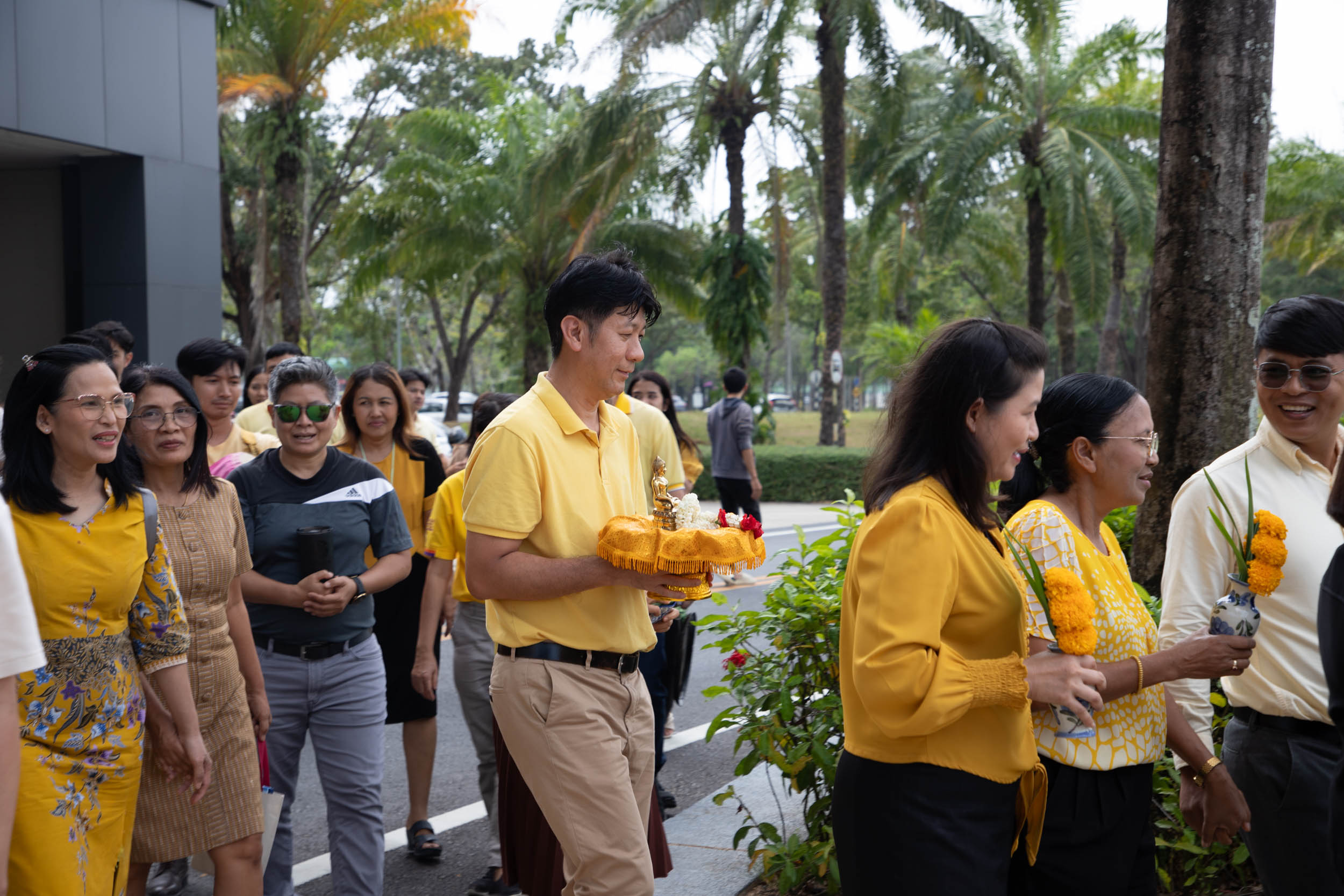 เมื่อวันที่ 11 มีนาคม ที่ผ่านมา อาจารย์ ดร.นีรนาท แก้วประเสริฐ ระฆังทอง ผู้อำนวยการศูนย์บริการการศึกษา มหาวิทยาลัยวลัยลักษณ์ พร้อมเจ้าหน้าที่ในหน่วยงาน ร่วมแห่ขบวนกลองยาว จากศูนย์บริการการศึกษา อาคารไทยบุรี ด้วยรถไฟฟ้าจำนวน 2 คัน ไปยังอาคารส่วนบริการกลาง เพื่อร่วมแสดงความยินและส่ง นางวรรณนี เหมือนเพชร อดีตหัวหน้าฝ่ายบริการการสอนและการสอบ ศูนย์บริการการศึกษา ไปเข้ารับตำแหน่งใหม่ สังกัดส่วนบริการกลาง ในตำแหน่งหัวหน้าส่วน โดยมี เจ้าหน้าที่ส่วนบริการกลาง ให้การต้อนรับอย่างอบอุ่น