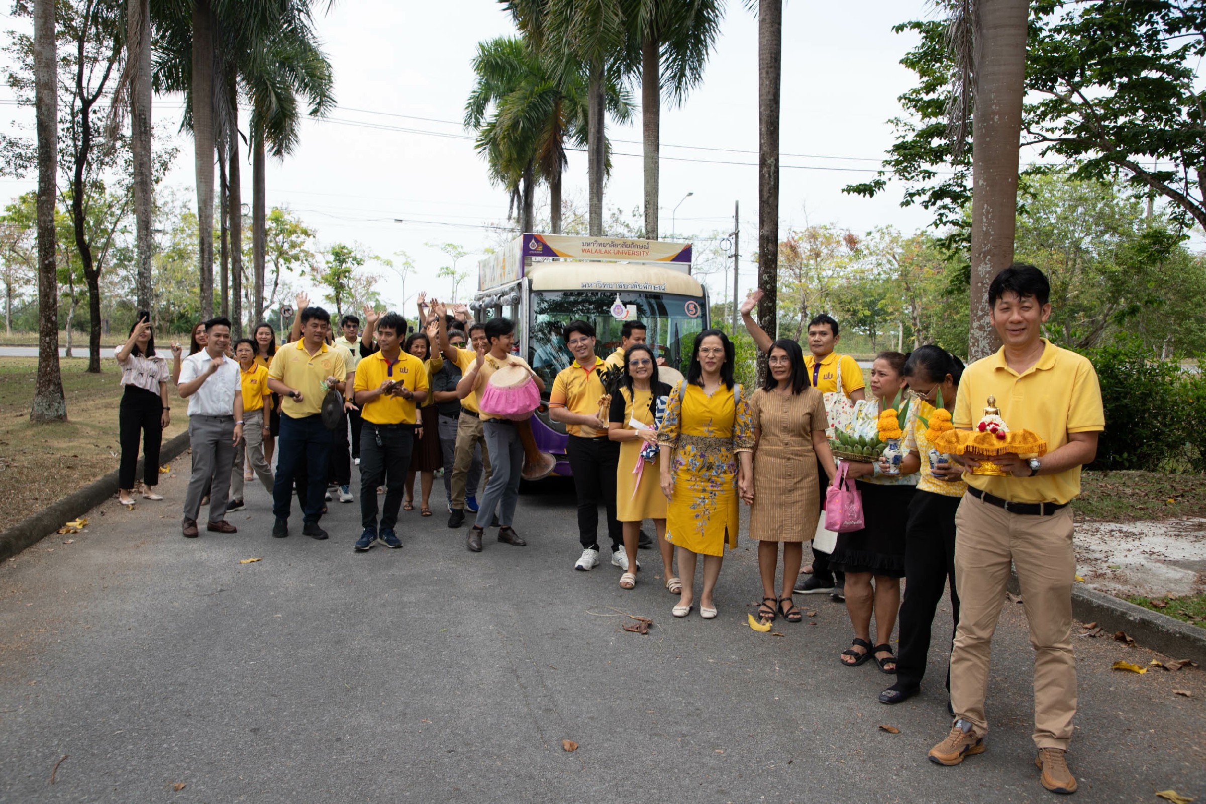 เมื่อวันที่ 11 มีนาคม ที่ผ่านมา อาจารย์ ดร.นีรนาท แก้วประเสริฐ ระฆังทอง ผู้อำนวยการ พร้อมเจ้าหน้าที่ศูนย์บริการการศึกษา มหาวิทยาลัยวลัยลักษณ์ นำทัพขบวนกลองยาว ร่วมส่งนางวรรณนี เหมือนเพชร หัวหน้าฝ่ายตารางเรียนและตารางสอน