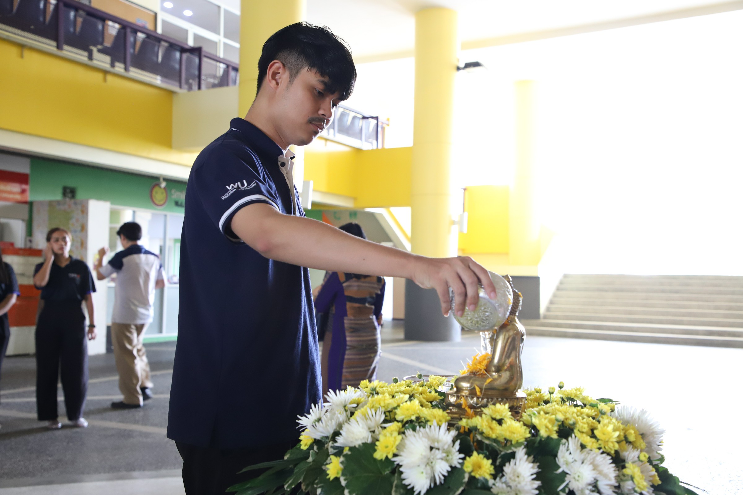 ศูนย์บริการการศึกษา จัดพิธีสรงน้ำพระ ขอพรเนื่องในวันสงกรานต์ ให้กับคณาจารย์ บุคลากร และนักศึกษา เพื่อสืบสานประเพณีไทย