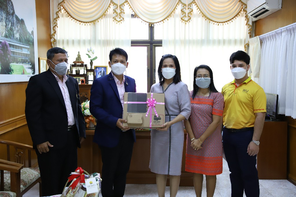 การเข้าเยี่ยมโรงเรียนและสวัสดีปีใหม่ในครั้ง ประธานศูนย์สอบมหาวิทยาลัยวลัยลักษณ์ ยังได้มอบ คอมพิวเตอร์โน็ตบุ๊ค พร้อมอุปกรณ์ ให้กับโรงเรียนๆละ 1 ชุด เพื่อใช้แทนคำขอบคุณกับการทำงานร่วมกันตลอดปีที่ผ่านมา นอกจากนั้นยังได้ร่วมพูดคุย แนวทางการจัดสอบในปีนี้และปีถัดไป เพื่อกำหนดแผนการทำงาน และเตรียมความพร้อมก่อนวันสอบที่กำลังจะมาถึงในช่วงเดือนมีนาคมนี้