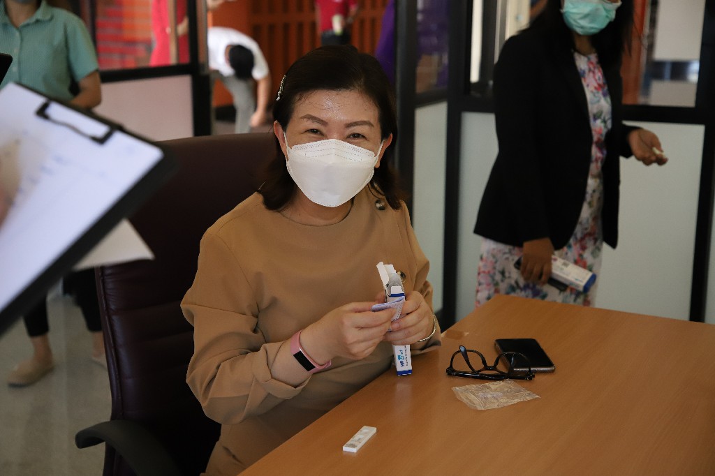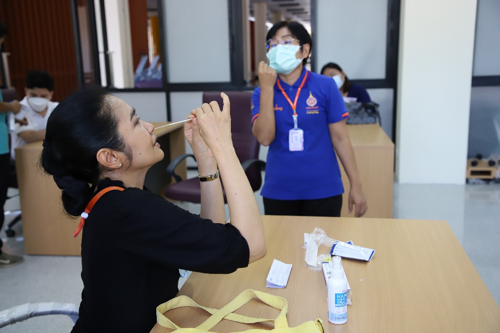 เมื่อวันที่ 26 มกราคม 2565 อาจารย์ ดร.นีรนาท แก้วประเสริฐ ระฆังทอง ประธานศูนย์สอบมหาวิทยาลัยวลัยลักษณ์ เชิญ ผศ.กำไล สมรักษ์ รักษาการแทนรองผู้อำนวยการโรงพยาบาลศูนย์การแพทย์ มหาวิทยาลัยวลัยลักษณ์ เป็นวิทยากรการสอนการตรวจหาเชื้อ โควิด-19 ด้วยรูปแบบ ATK ให้กับคณะทำงานการสอบภาคความเหมาะสมกับตำแหน่ง (ภาค ค) เพื่อบรรจุบุคคลเป็นข้าราชการหรือพนักงานส่วนท้องถิ่น ของสนามสอบมหาวิทยาลัยวลัยลักษณ์ ในวันที่ 26 มกราคม 2565 เวลา 13.00 – 16.00 น. และวันที่ 27 มกราคม 2565 เวลา 07.00 – 08.00 น. โดยให้ประธานศูนย์สอบ เป็นผู้รับการสาธิตการตรวจ ATK ด้วยตัวเอง เป็นลำดับแรก และมีคำสั่งให้คณะทำงานทุกคนตรวจหาเชื้อ โควิด-19 ก่อนเข้าร่วมปฏิบัติงาน เพื่อความมั่นใจของผู้มาปฏิบัติงานเองและผู้เข้าสอบ ของสนามสอบมหาวิทยาวลัยลักษณ์ในครั้งนี้