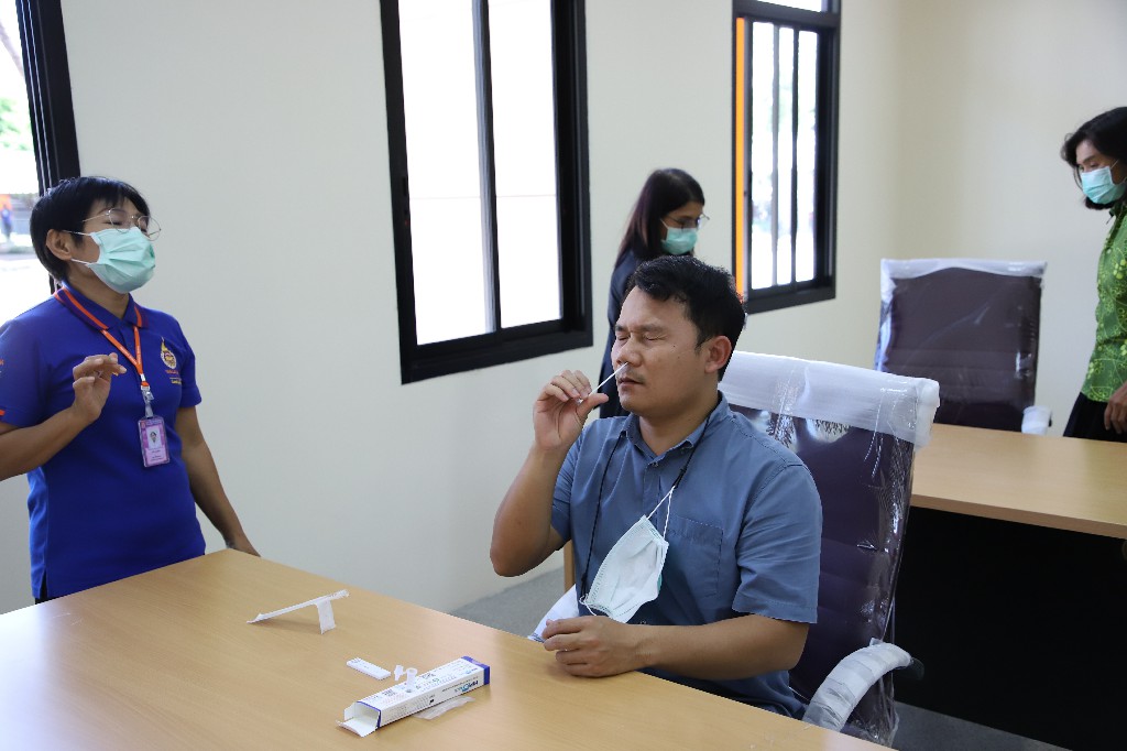 ประธานศูนย์สอบ ม.วลัยลักษณ์ เชิญผู้เชี่ยวชาญสาธิตการตรวจ ATK หาเชื้อ โควิด-19 ด้วยตัวเอง ให้กับคณะทำงานสอบท้องถิ่น สนามสอบ ม.วลัยลักษณ์