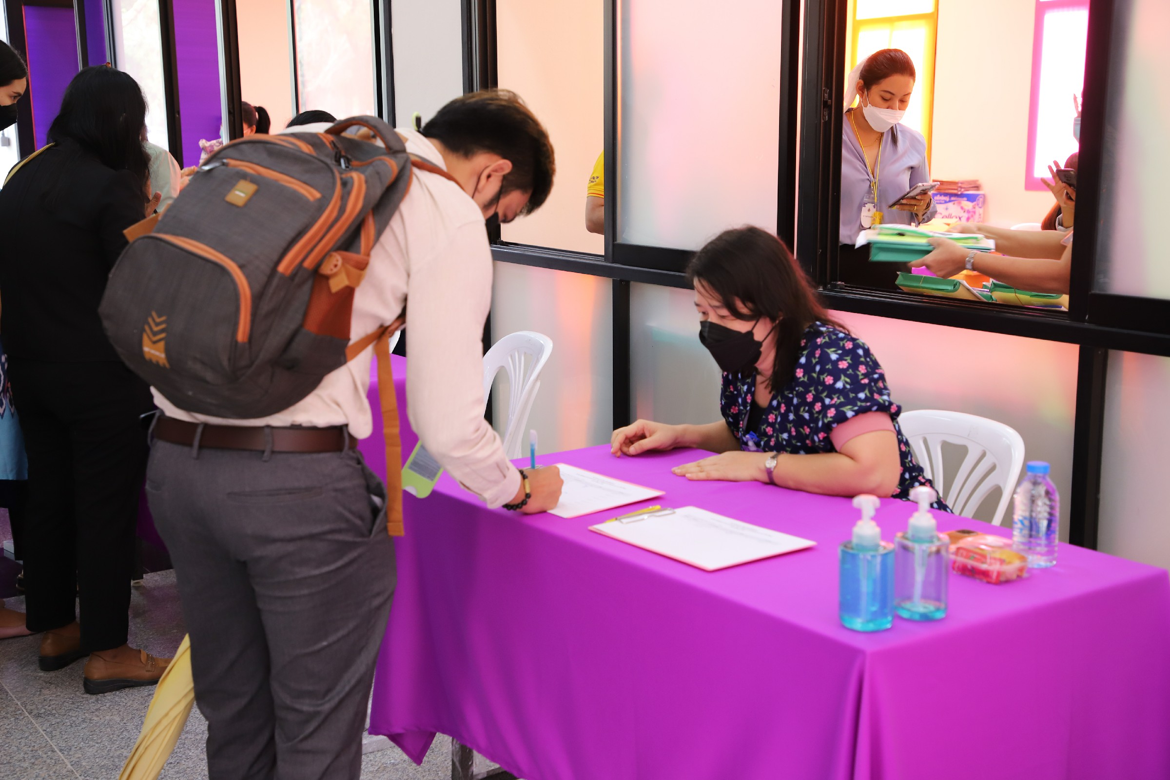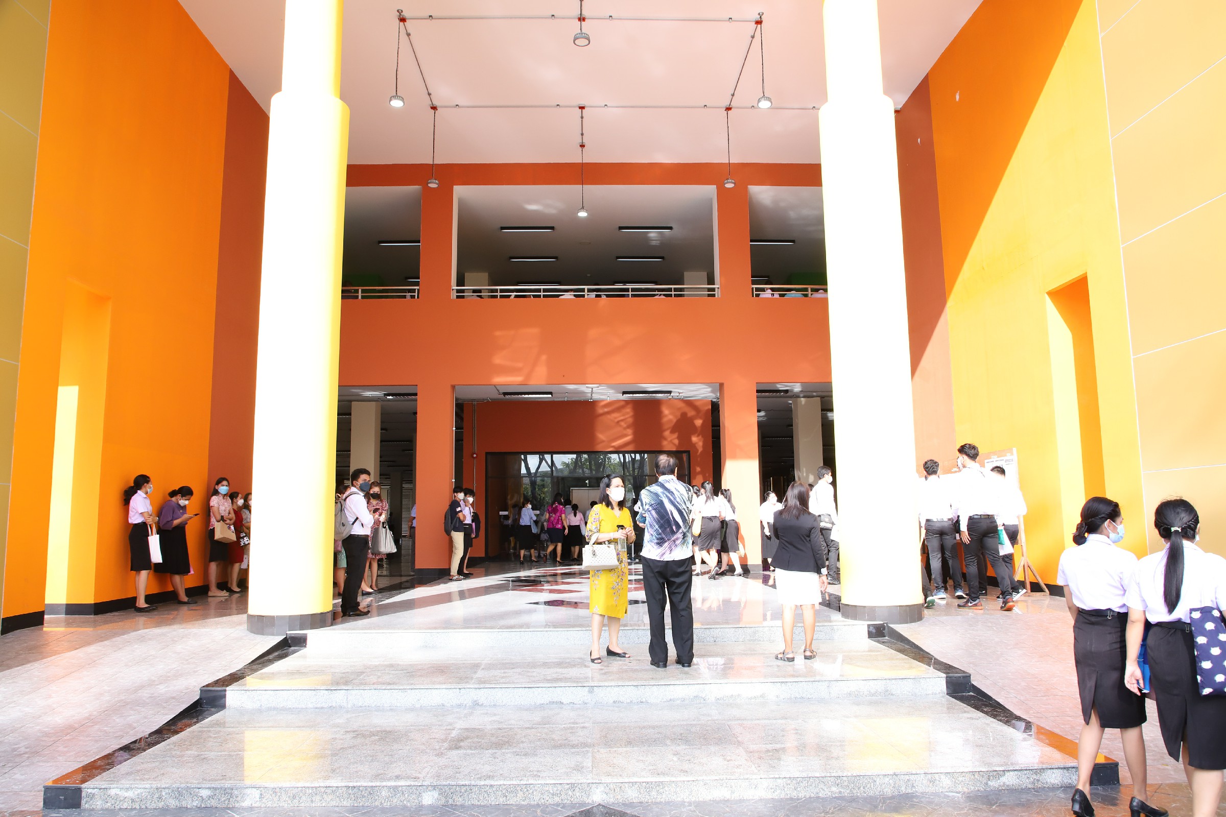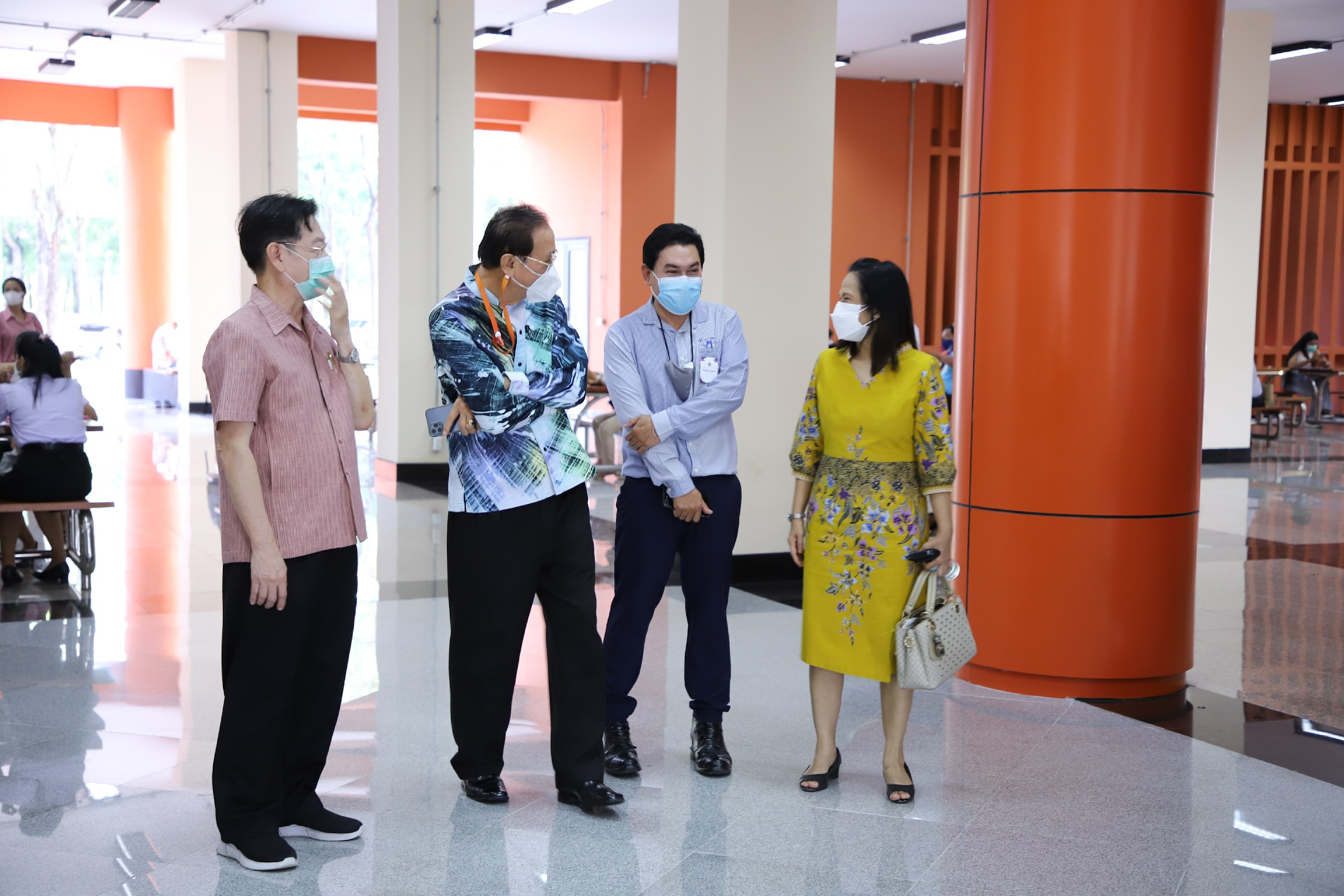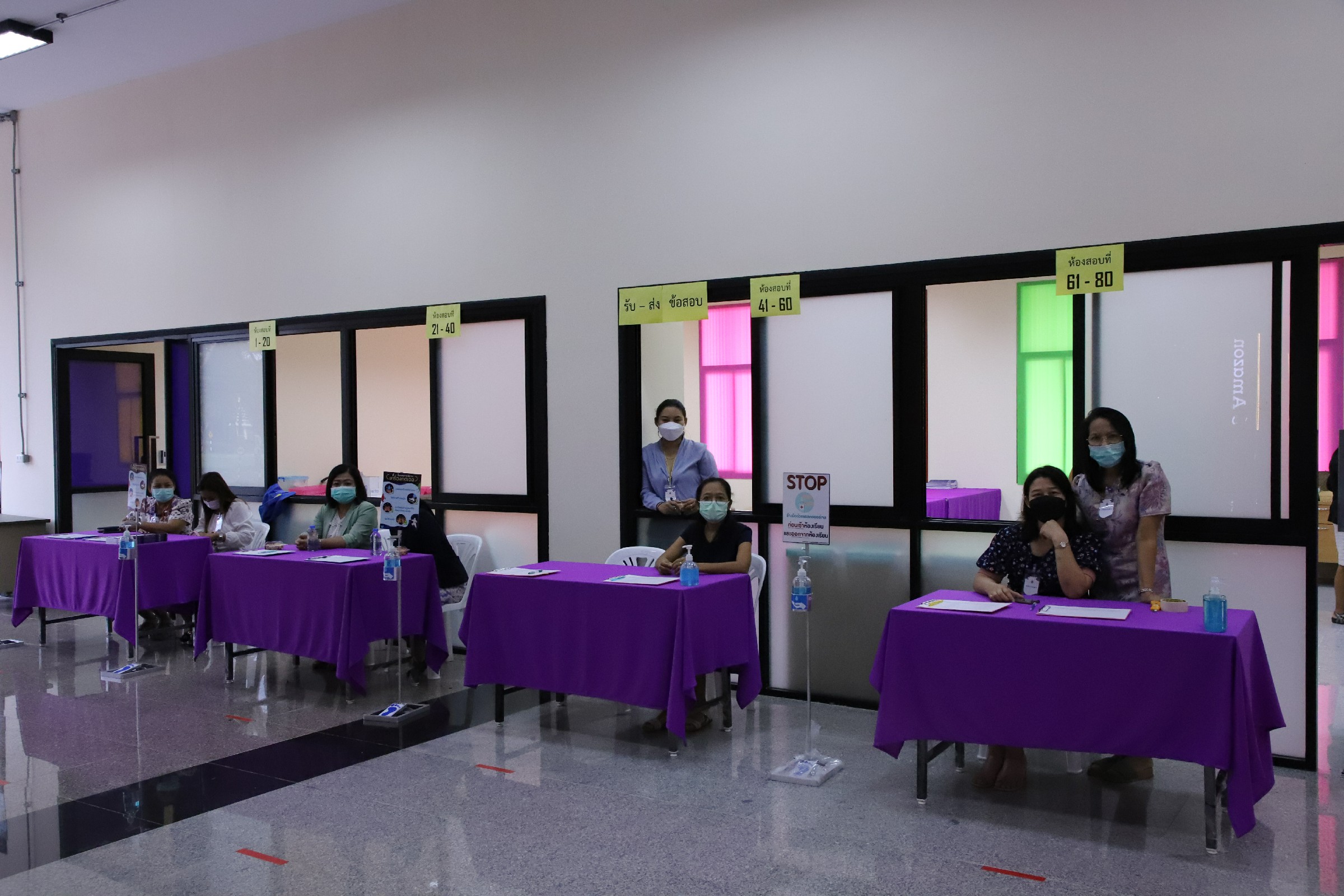 ท่านอธิการบดีมองว่าอาคารเรียนรวม ST มีพื้นที่ที่สะดวกสบายเหมาะสำหรับการจัดการสอบในลักษณ์นี้ พร้อมทั้งได้แนะนำรูปแบบการบริหารจัดการพื้นที่ในการจัดสอบ เพื่อเป็นแนวทางในการพัฒนาการรูปแบบการทำงานให้มีประสิทธิภาพต่อไป หลังจากนั้นท่านอธิการบดีได้ให้เกียรติพบปะพูดคุยกับผู้ปฏิบัติงานในสนามสอบ พร้อมทั้งให้กำลังใจ และอวยพรให้ผู้ปฏิบัติงานสามารถทำงานได้อย่างมีประสิทธิภาพ