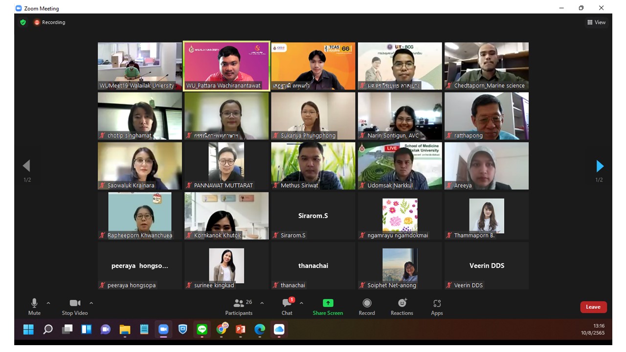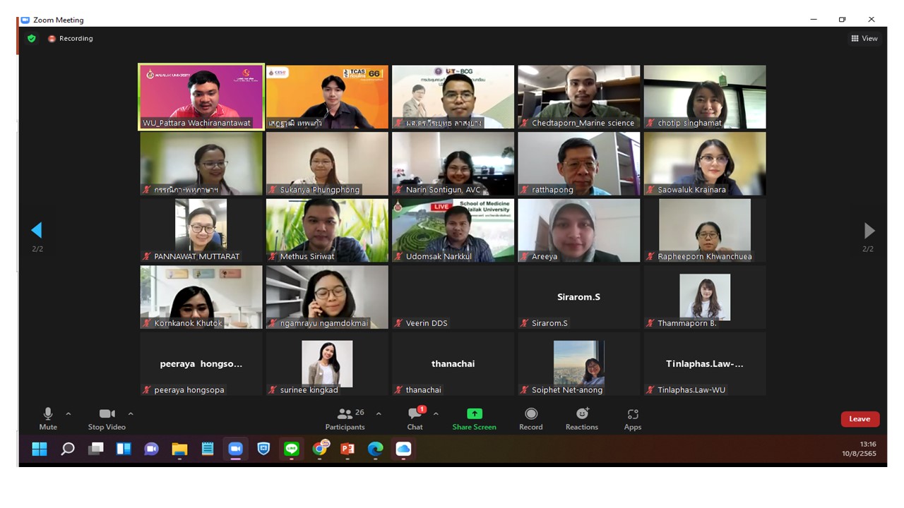 เมื่อวันพุธที่ 10 สิงหาคม 2565 เวลา 13.00 – 16.00 น. ฝ่ายวิเคราะห์ระบบและสารสนเทศ ศูนย์บริการการศึกษา จัดอบรมหลักสูตร “แนะนำระบบบริการการศึกษา สำหรับอาจารย์ใหม่และผู้ที่สนใจ ประจำปีงบประมาณ 2565 ผ่านระบบ Zoom Meeting มีอาจารย์ใหม่และผู้ที่สนใจเข้าร่วมจำนวนทั้งสิ้น 52 คน สำหรับวัตถุประสงค์ในการจัดอบรมครั้งนี้ เพื่อให้ผู้เข้าร่วมอบรมได้มีความรู้ความเข้าใจเกี่ยวกับระบบการบริการการศึกษาของศูนย์บริการการศึกษา สำหรับให้บริการนักศึกษา และอาจารย์ ใน 2 ระบบหลักคือ ระบบฝ่ายบริการการสอนและการสอบเกี่ยวกับการจัดการเรียนการสอน ตารางเรียน ตารางสอบแบบออนไลน์ ฯ และระบบทะเบียนและประมวลผล เช่น การพิจารณาคำร้องออนไลน์ การตรวจสอบข้อมูลระเบียนประวัตินักศึกษา การตรวจกระดาษคำตอบปรนัย และการวิเคราะห์ข้อสอบ ฯ