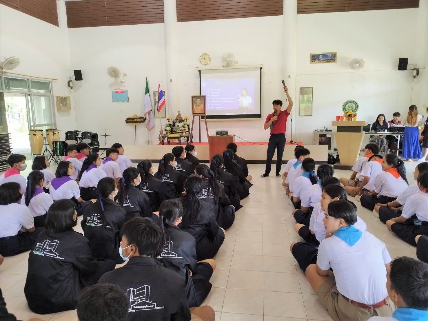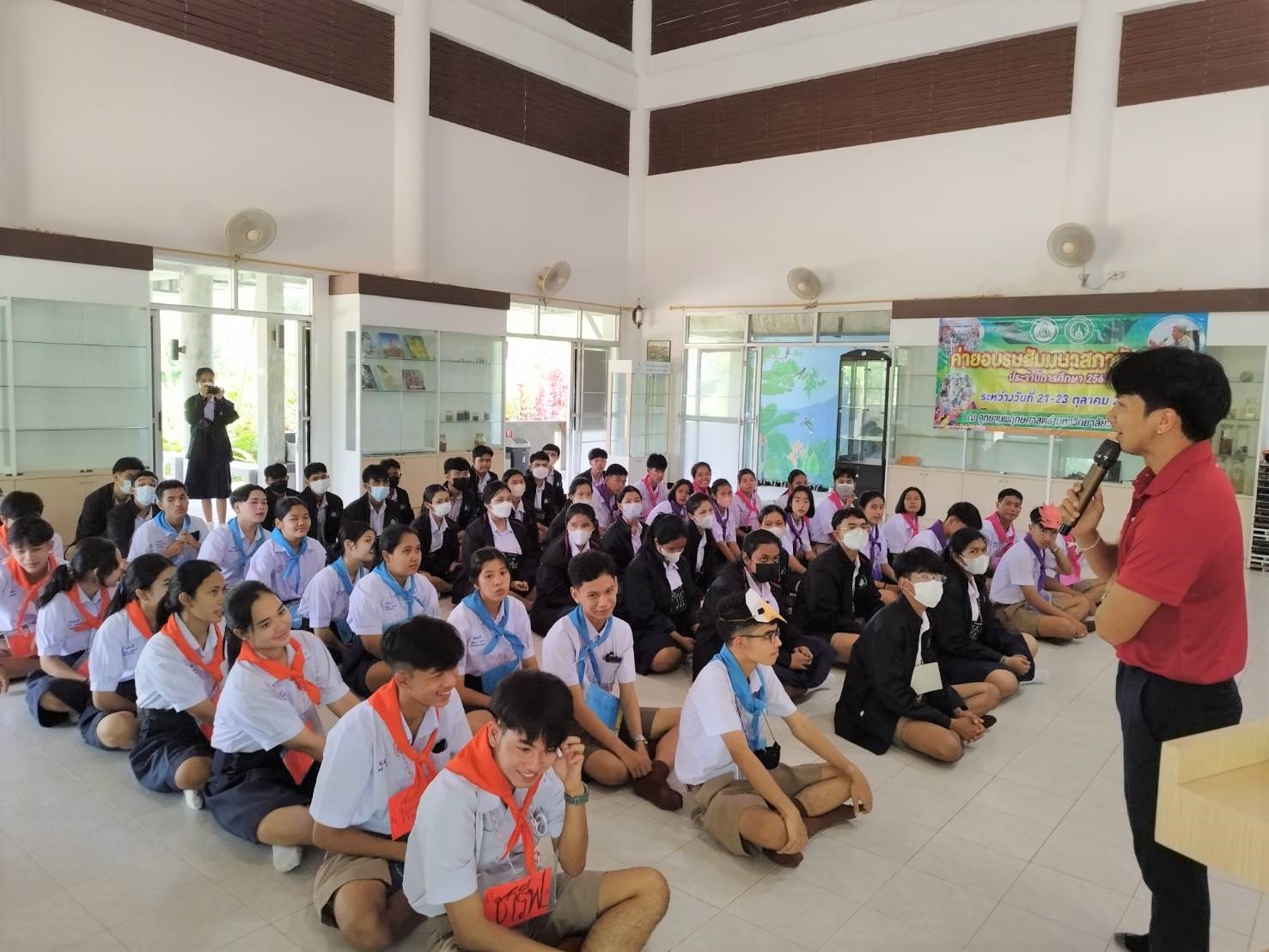 วันนี้ (21 ต.ค. 2565) เวลา 10.30 -11.30 น. ส่วนสื่อสารองค์กร มหาวิทยาลัยวลัยลักษณ์ เชิญ นายเสฏฐวุฒิ เทพแก้ว และนายธีระวิทย์ ทองรักษ์จันทร์ เจ้าหน้าที่งานรับนักศึกษา ศูนย์บริการการศึกษา มหาวิทยาลัยวลัยลักษณ์ เป็นวิทยากรแนะแนวการศึกษาต่อในมหาวิทยาลัยวลัยลักษณ์ ประจำปีการศึกษา 2566 รวมถึงแนะนำช่องทางการรับสมัครนักศึกษา ให้กับนักเรียน ชั้นมัธยมศึกษาชั้นปีที่ 5-6 จากโรงเรียนเมืองนครศรีธรรมราช ที่มาจัดกิจกรรมค่ายอบรมสัมมนาสภานักเรียน ระหว่างวันที่ 21-23 ตุลาคม 2565 ณ อุทยานพฤษศาสตร์ มหาวิทยาลัยวลัยลักษณ์