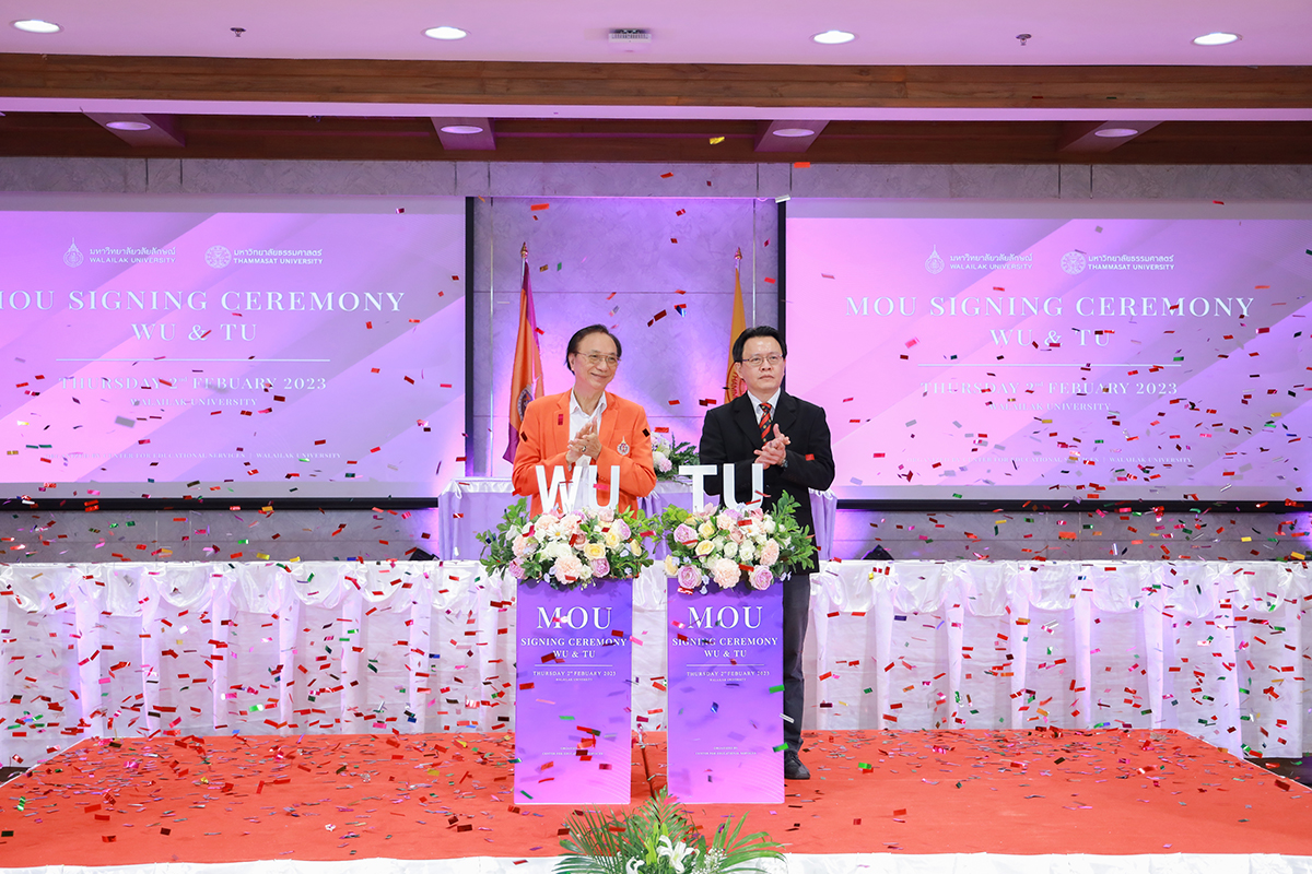 ในการนี้อาจารย์ ดร. นีรนาท แก้วประเสริฐ ระฆังทอง ผู้อำนวยการศูนย์บริการการศึกษา พร้อมด้วยเจ้าหน้าที่ศูนย์บริการการศึกษา มหาวิทยาลัยวลัยลักษณ์ และสำนักงานทะเบียนนักศึกษา มหาวิทยาลัยธรรมศาสตร์ร่วมเป็นสักขีพยานในการลงนาม
